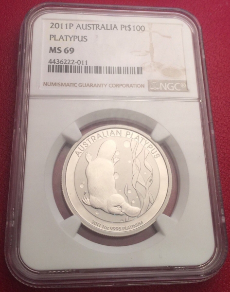 Платиновая монета 100 долларов "Утконос", 31,1г., Австралия