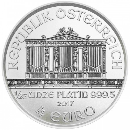 Платиновая монета Австрии 4 евро "Венская Филармония" 1/25 унции, 2017 год