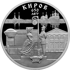 Серебряная монета 3 рубля " 650-летие основания г. Кирова" 2024г, 31,1г.,ПРУФ