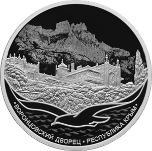 Серебряная монета 3 рубля "Воронцовский дворец, Республика Крым" 31,1г., 2023г., Ag 925, Proof