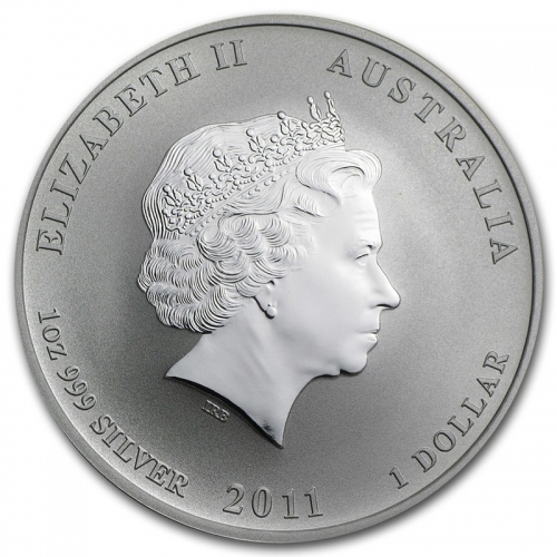 Серебряная монета Австралии 1 доллар Лунный календарь 2 -год Кролика 2011 год 1oz, 31,1г.
