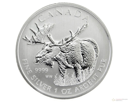 Серебряная монета Канады 5 долларов "Лось" 1oz, 31,1г., Ag 9999, 2012 год