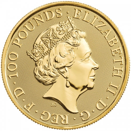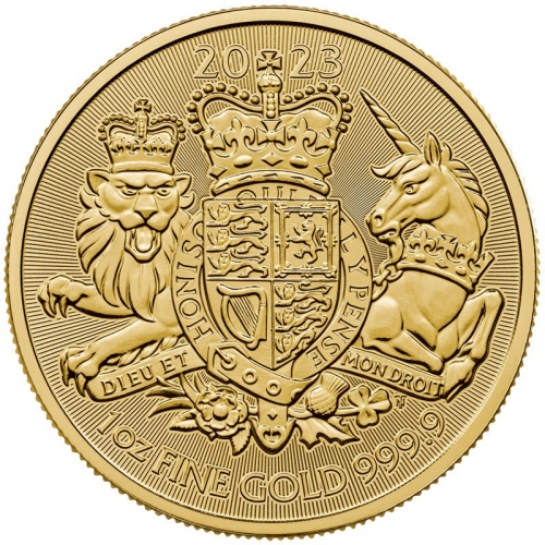 • Золотая монета Королевского монетного двора символизирует силу и величие монархии Соединенного Королевства. Герб работы Тимоти Ноада (Timothy Noad), все детали продуманы и символичны, в нем нет ничего лишнего, только то, что говорит о чести и доблести, о событиях и правящих особах. Королевский герб Великобритании считается персональным для правящего монарха. Все остальные члены монаршей семьи имеют свои геральдические знаки отличия.