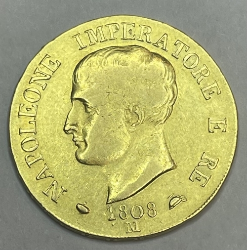Золотая монета 40 лир Наполеон I , Италия, 1808 год, 900 проба
