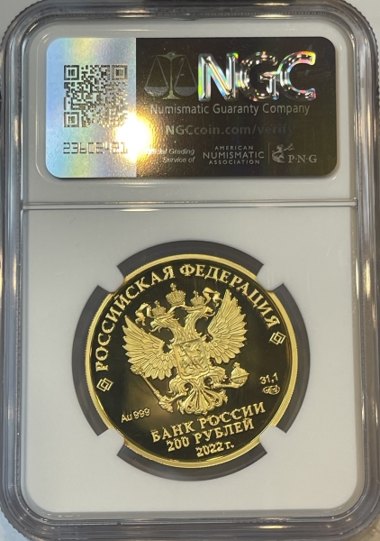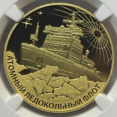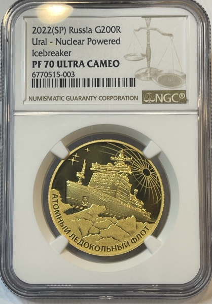 Золотая монета "Атомный ледокол "Урал", 200 рублей, 2022 год, в слабе NGC PROOF 70 ULTRA CAMEO