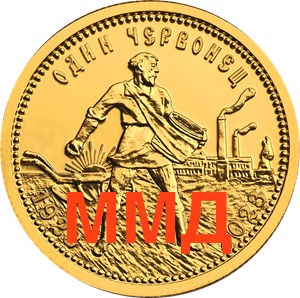 — золотая монета номиналом 10 рублей «Золотой червонец» (каталожный номер 5214-0009).